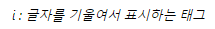 <i>i : 글자를 기울여서 표시하는 태그</i>